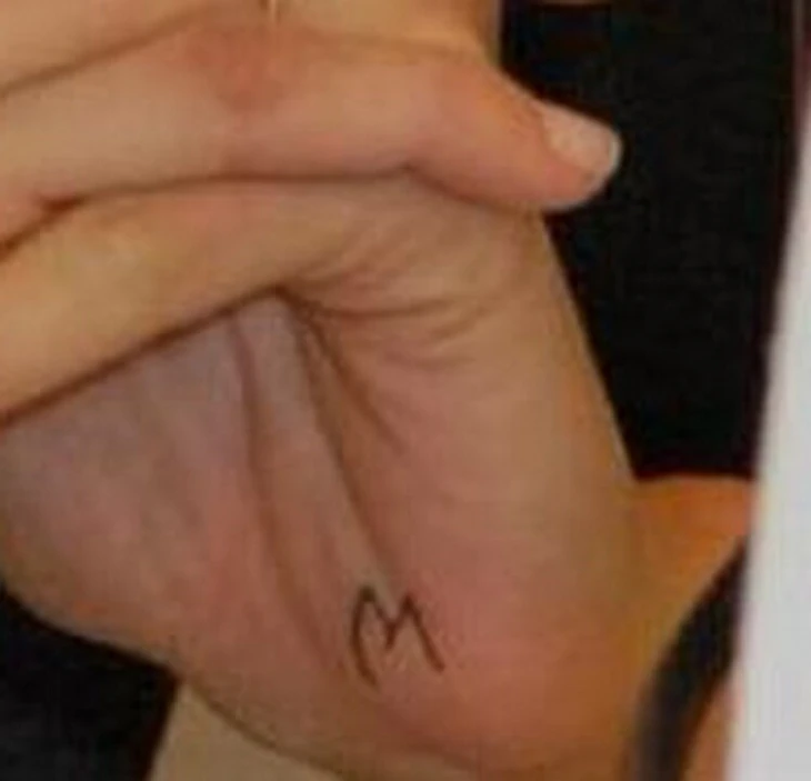 На ладони у Анджелины Джоли вытатуирована едва заметная буква «М». Она означает имя ее матери Маршелин. Родители актрисы развелись, когда ей исполнился год от рождения. Всю жизнь ее вместе со старшим братом воспитывала мать, которая умерла от рака груди. «М» – это дань памяти. Каждый раз, глядя на ладонь, Анджелина с благодарностью вспоминает свою родительницу.