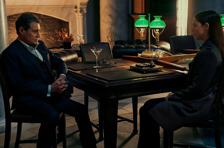 Все, что касается истории и персонажей, сделано в «Балерине» откровенно плохо. Все герои, даже главная в исполнении Аны де Армас, – не живые люди, а функции, которые вместе разыгрывают примитивную и блеклую историю мести. Персонажи разговаривают клише и строчками из других плохих боевиков. Ни один из них не берет (точнее – ему не дают) на себя больше, чем требует его поверхностный образ. Ева – мстит, Директриса – злится в телефон, главный злодей Канцлер в исполнении прекрасного актера Гэбриэля Бирна – скалится и каждые 20 минут отдает приказы убить Еву, а появляющиеся на несколько минут в кадре герои Иэна Макшейна и Лэнса Рэддика – учтиво улыбаются.