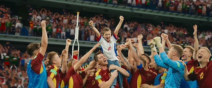 Похожее было на сеансе третьего «Льда», где в финале мир замирает, звучит эпическая музыка, а героиня взмывает в воздух и наконец исполняет заветный четверной тулуп. Никто не сомневался, что у нее получится, но какая же красота. «Больше, чем футбол» проворачивает похожий трюк – абсолютно предсказуемый, но все равно приятный.