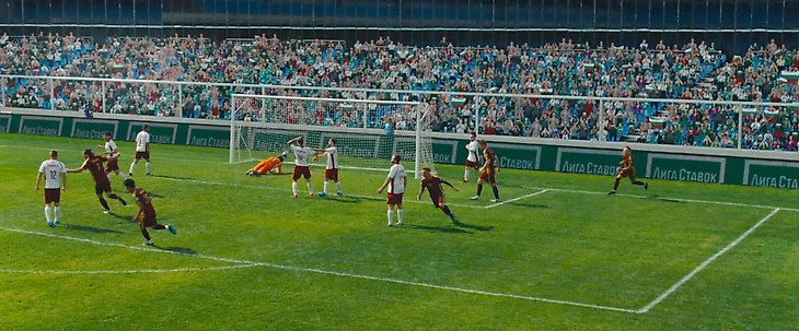 Важно, что в фильме много симпатичного футбола с обводками, причудливыми комбинациями, Виталием Дьяковым в актерском составе и множеством отсылок. Например, швед Ибрагимов после ошибки вратаря забьет в пустые ворота ударом через себя. Да, прямо как сами знаете кто в ворота Англии в 2012-м. После чудовищного «Финала», где толком не было волейбола, это почти благословение.