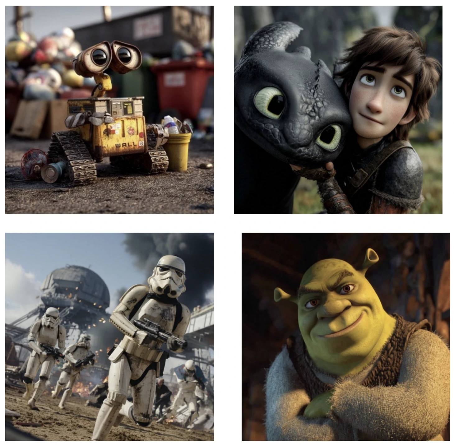 В документах приводится ряд примеров, включая созданные с помощью искусственного интеллекта изображения Эльзы из «Холодного сердца», Гомера из «Симпсонов», Дарта Вейдера, Шрека, Миньонов и Человека-паука.