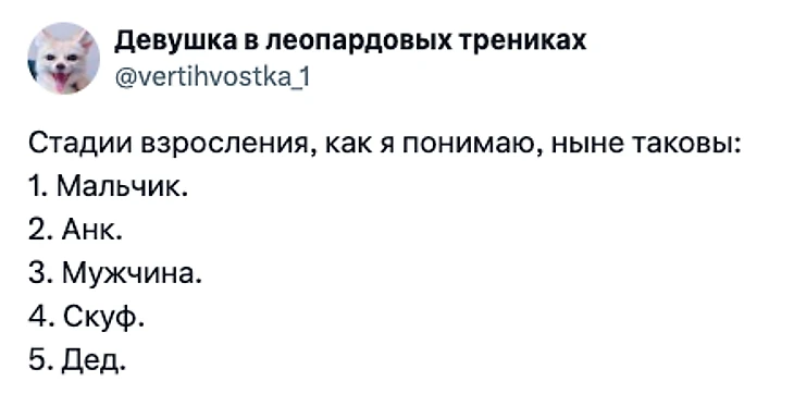 Слово «скуф» за последнюю пару лет прижилось в языке так, будто всегда там было. Его используют даже далекие от мира мем-лент люди, а «Грамота» включила его в шорт-лист слов 2024 года. И зумеры выдумали ему слово-конкурента – «анк». Им называют мужчин, которые пытаются выглядеть моложе.