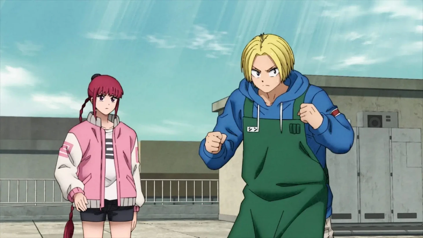 Лю сражается с Обигуро и говорит ей, что она вместе с Шином чувствует себя одной семьей с Сакамото. Обигуро впечатлена стилем боя соперницы и отпускает заложников. Резко похудевший Таро продолжает сражаться с Бойлдом и утверждает, что сила на его стороне, поскольку он сражается за близких людей. В конце концов Бойлд признает себя проигравшим, и Таро покупает ему в киоске несколько мясных пирожков.