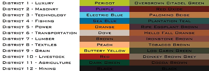 Если говорить просто, дистрикт – это как отдельный регион или округ внутри страны Панем. Всего таких дистриктов было 13, хотя Капитолий долго притворялся, что их 12. Каждый дистрикт специализировался на чем-то своем. Чем занимаются дистрикты в «Голодных играх» – напрямую связано с их ролью в экономике Панема и формировало идентичность жителей этих регионов. Это отражалось даже в одежде трибутов – на 74 Голодных играх участники от каждого дистрикта вынуждены были одеваться в только в предназначенные для них цвета.