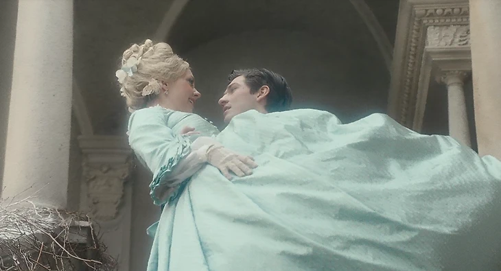 Важная деталь: вначале мы видим мечты Эльвиры в розовых тонах – и в этих мечтах она выглядит такой же, как и в жизни, разве что чуть наряднее. В конце цветокор становится холодно-голубым: в грезах Эльвира видит себя в синем платье и светлыми волосами – как образ Золушки. На пути к самосовершенствованию и попытках подражать Агнес она теряет себя.