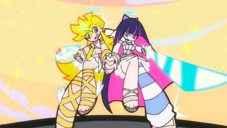 Труська, Чулко и пресвятой Подвяз (Panty & Stocking With Garterbelt Encourages Edginess) – эпатажное аниме 2010 года от студии Gainax под режиссурой Хироюки Имаиши, известного по Gurren Lagann. Всего 13 серий, сериал броско смешивает западную визуальную стилистику с японской мангой, создавая резкую, комичную картину с откровенным юмором и неоднозначными мотивами. Музыку в стиле электронного хип-хопа написали Taku Takahashi (M-Flo) и TeddyLoid, что оставило музыкальный след и подчеркивает безумную энергию шоу.