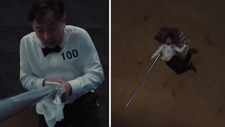 ● Игрока 444 ранил в ногу снайпер в первом конкурсе «Красный свет, зеленый свет». Сон Кихун помог мужчине завершить испытание, но его все равно убили.