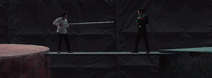 ● Главный герой перепрыгнул на третью платформу и начал драку из-за 222-й. Во время схватки Менги схватил дочку и протянул ее над пропастью, угрожая сбросить.