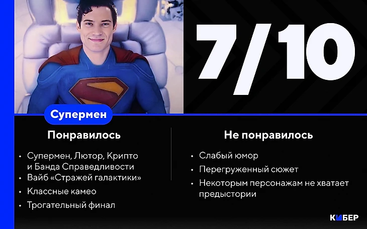 Эксперимент Джеймса Ганна удался. «Супермен» стал глотком свежего воздуха для гиков и фанатов комиксов. Обычный зритель в первые 30-40 минут задастся вопросом: «Да что здесь вообще происходит?». Но не спешите ворчать, дайте фильму шанс.