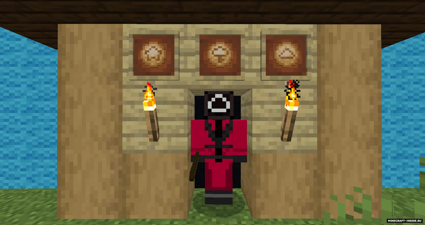 Мод Squid Game переносит в Minecraft атмосферу напряженных испытаний из культового корейского сериала. Игроки смогут принять участие в знаменитых испытаниях, сразиться с NPC-охранниками в масках и даже примерить на себя роль одного из участников шоу. Мод добавляет не только ключевых персонажей – от безликих солдат до загадочного Фронтмена, – но и тематическое оружие, броню и декорации, воссоздающие мрачную атмосферу сериала.