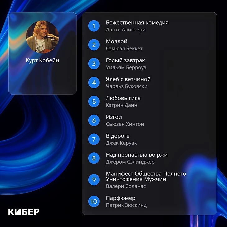 Курт Кобейн о «Парфюмере» Патрика Зюскинда: «Я читал его уже раз десять и все еще не могу оторваться. Книга постоянно лежит у меня в кармане, не отпускает меня ни на шаг».