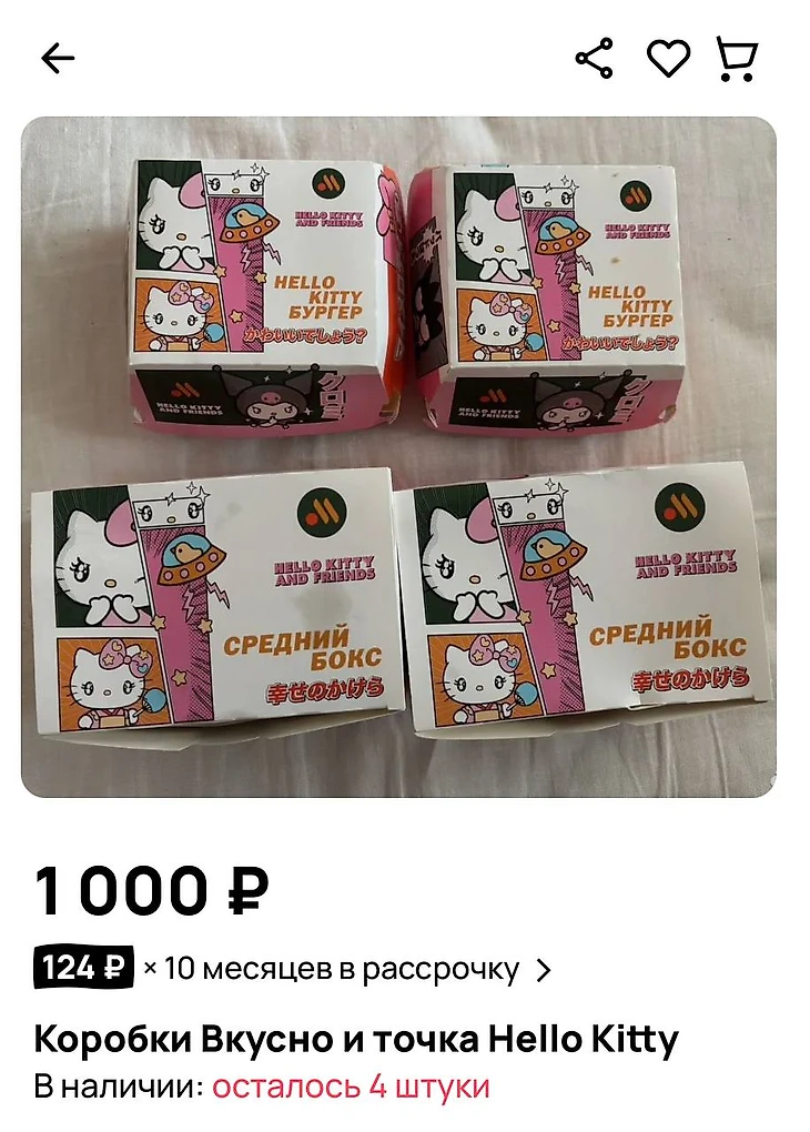 Это не первая коллаба с кошечкой. Ровно год назад сеть уже выпускала в меню супербоксы с Хеллоу Китти и ее друзьями. Но в тот раз в бокс входили 8 клипс, которые можно было цеплять на одежду и рюкзаки.