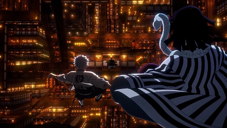 Камера показывает Музана Кибуцудзи, наблюдающего за сражением из тени. Его лицо выражает не гнев, а холодное размышление – он уже планирует следующий ход.