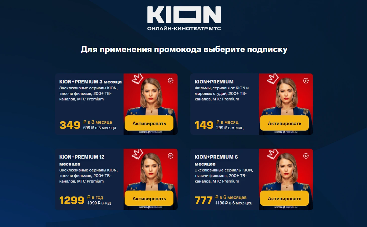 BESTPROM12 – KION+МТС Premium на 12 месяцев за 1299р.