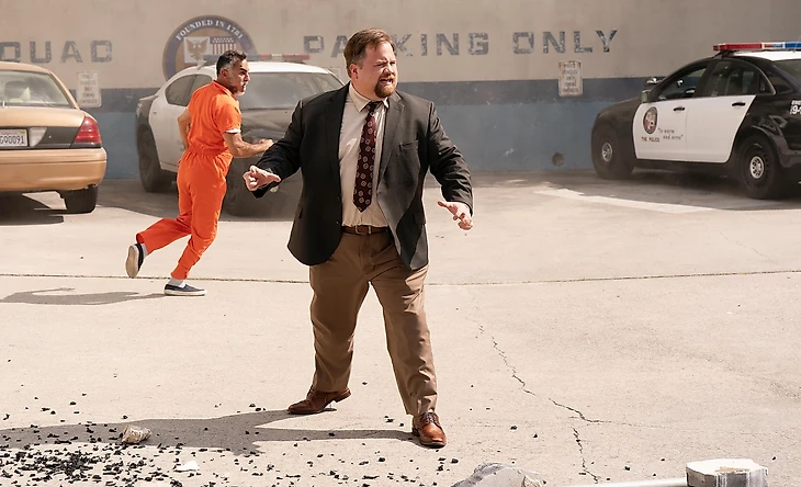 Как и многие пародии, «Голый пистолет» 2025 года можно поделить условно на две части. В первой, где мы узнаем персонажей и знакомимся с завязкой, количество тупейших шуток на квадратный сантиметр фильма не поддается исчислению. Девочка с леденцом, сбитый несколько раз один и тот же велосипедист, транспортировка автомобиля краном как из автоматов с игрушками и постоянные гэги про кофе — это лишь 1% шуток, которые авторы запихнули в этот небольшой 80-минутный фильм. И если вы хоть раз видели «Аэроплан!», «Горячие головы», оригинальный «Голый пистолет» и другие подобные картины, и влюблены в жанр, вы почувствуете в новом фильме себя как дома.