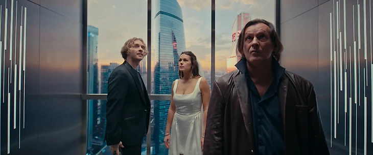 90% хронометража зритель проведет в лифте, что застрял посреди пафосного и очень высокого бизнес-центра. Застрял, к слову, в пятницу посреди рабочего дня, когда в офисах еще толпились работяги. Судя по панорамным видам, лифт в здании будто бы один. Офисных пчелок это не смутило: очевидно, в бар с 80 этажа они побежали по лестницам и проигнорировали истеричные вопли героев. А могли бы подойти к запертым бедолагам и крикнуть: «Егор, не ори, давай уже в понедельник».
