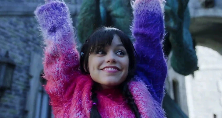 По поводу танца тоже можно спорить, но не стоило снова заставлять Ортегу забавно кривляться, это было бы странно. А вот посадить Энид на плечи невидимки – как минимум необычно и эмоционально.