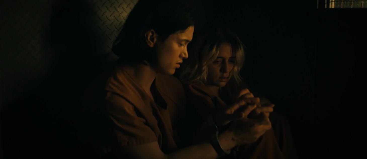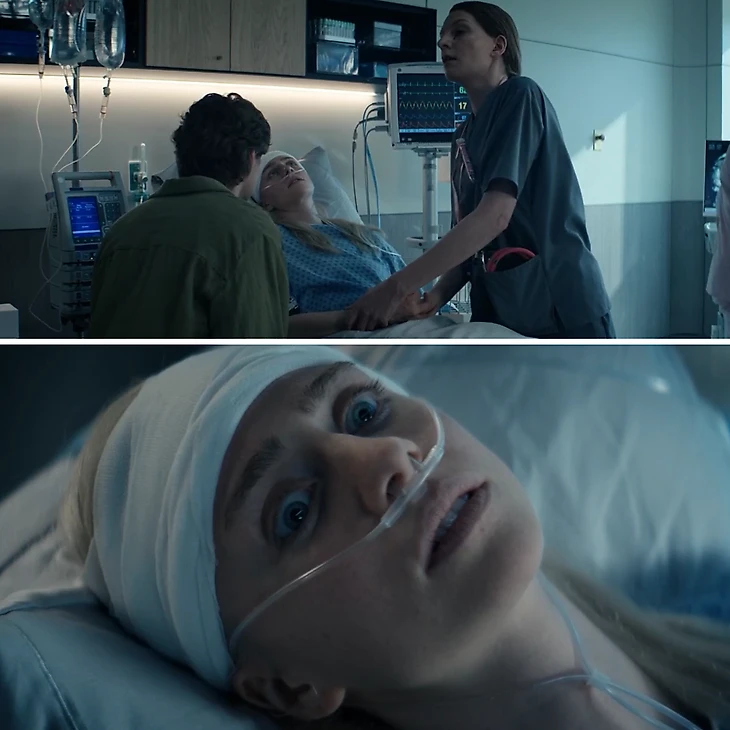 ● Друзья просыпаются в раздельных камерах. Кейт благодарит Эмму за попытку ее спасти, затем достает скобу из шва на голове и взламывает ошейник.