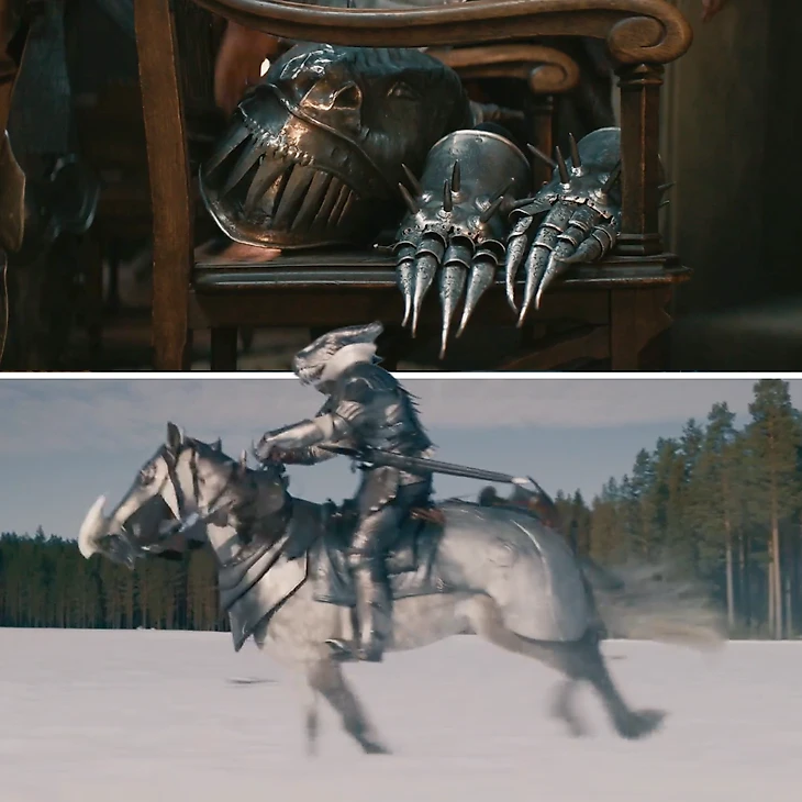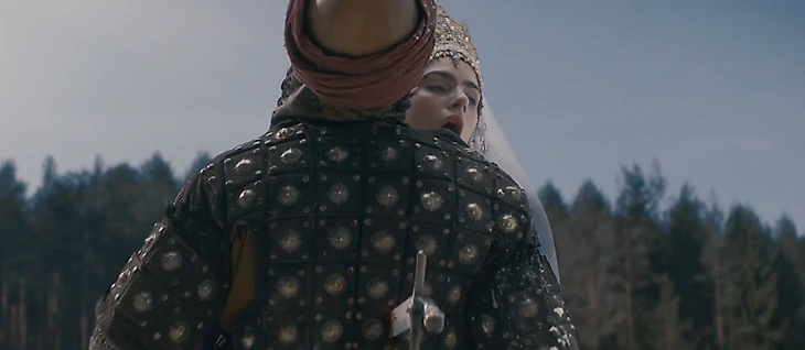 ● Затем зрителю показывают роскошный боевой доспех Влада – только вот Клим Жуков взвоет от увиденного. Главный цирк – огромный шлем с рогами в виде дракона. Окей, это средневековая фантастика, но ведь в нем невозможно вести адекватный бой! Более того, во время спасения жены Влад и вовсе сбрасывает шлем – конечно же, чтобы быть сиять в кадре.