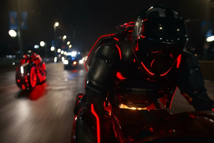 Но таких радостей в «Аресе» почти нет. По сюжету программы выбрались наружу, и это сильно повлияло на визуальный баланс фильма. Если раньше в предыдущих «Тронах» было естественное отличие реального мира от виртуальной реальности, то тут границы стали чуть более размытыми. Неоновый компьютерный мир, обычно окрашенный в красно-черное, не сильно отличается в «Аресе» от темного мегаполиса, в котором ведут войну ENCOM и Dillinger Systems. И, возможно, в любом другом фильме это не стало бы проблемой, но в «Троне», где в визуальном коде всегда было заложено многое, это сильно бросается в глаза.