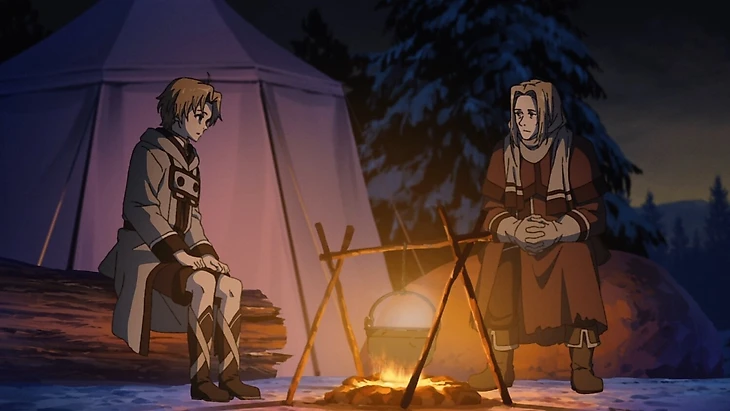 Сюжет этой части делает акцент на внутренней трансформации персонажей. Рудеус, впервые оказавшись вдали от родных, теряет опору и учится действовать самостоятельно. Эрис взрослеет, обретая решимость и силу, а Руджерд становится воплощением чести и наставником для обоих.