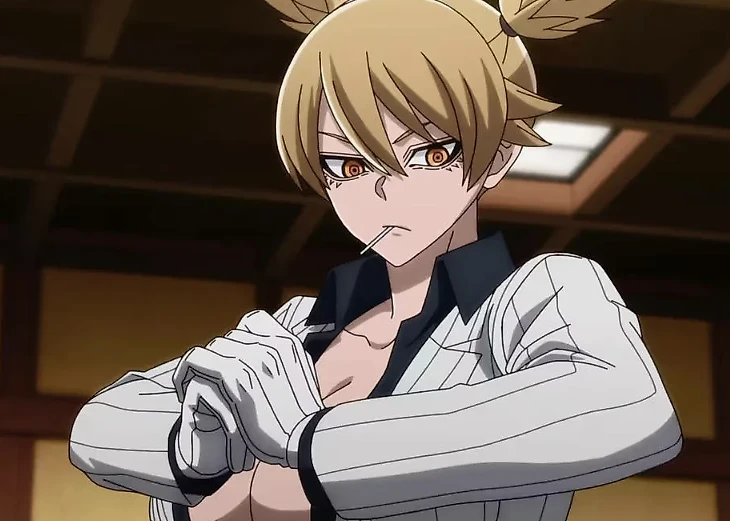 Способность: ее Blood Eclipse Release позволяет формировать кровавые боевые перчатки, которыми она внедряет свою кровь в тело противника, снижая его волю. Ее «объект» – Рокуро Кирияма (Rokuro Kiriyama). Отношения с одноклассниками тяжелые из-за ее поведения, особенно с Икари.
