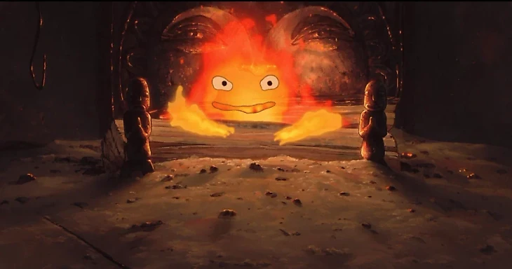 Огненный демон, обитающий в печи замка Хаула. Его рост и точный возраст невозможно определить в человеческих единицах. В романе Кальцифер изображен синим пламенем, а в аниме-фильме представлен как огненное существо с голубовато-желтой расцветкой. Это падающая звезда, которую Хаул когда-то поймал и связал с собой договором, обеспечивая демона долгой жизнью в обмен на магическую силу.