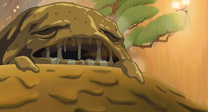 Речной дух – древний и мудрый дух реки, который приходит в волшебные бани Абура-я крайне загрязненным. Этот дух покрыт толстым слоем грязи, мусора, химических отходов и различных предметов, которые были выброшены в реку людьми, заражающими и разрушающими его естественную среду обитания. Это еще одна очевидная параллель с реальным миром от Миядзаки.