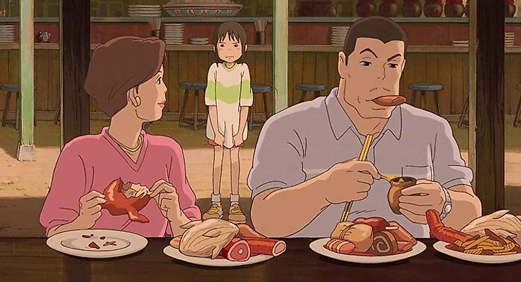 Тихиро и родители-свиньи.