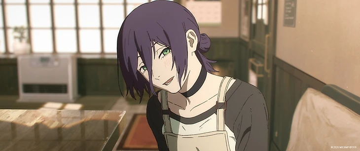 И вот тут как раз о стиле. Увы, «История Резе» прогнулась под изменчивый внутренний мир фан-базы оригинала. «История Резе» стала именно что аниме. Изменилась рисовка – в ней можно увидеть то ли «Магическую битву», то ли легкие вайбы 90-х, то ли просто усредненное по MAPPA-палате. Появились классические анимешные кадры с измененным фоном и акцентом на гиперэмоции персонажа. Цвета стали ярче и контрастнее. Меньше внимание к повседневным деталям и статичным кадрам. Темп, как уже упомянул, возрос (даже вне сцен сражения).