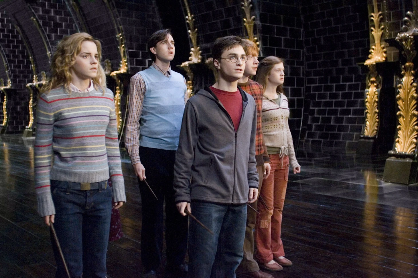 В пятой части – «Гарри Поттер и орден Феникса» – Гарри достигает возраста 15 лет. На пятом курсе он сталкивается с недоверием со стороны Министерства магии и создает «Отряд Дамблдора», чтобы обучать других студентов защите от Темных искусств. Также студенты пятого курса сдают первые серьезные экзамены Стандарты обучения волшебству (СОВ). От их результатов зависит то, каким предметам будут обучаться студенты на 6 и 7 курсах, а также выбор профессии.