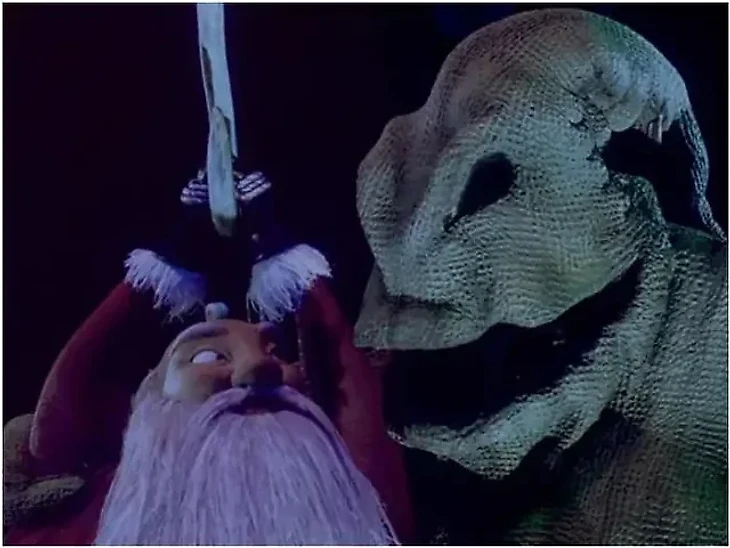 Уги Буги – это главный антагонист мультфильма, загадочный и зловещий персонаж, который обитает в логове под зданием казино. Уги Буги из «Кошмара перед Рождеством» напоминает огромного таракана с черным телом, желтыми линиями и множеством конечностей. Его два любимых хобби – азартные игры и захват заложников. Он исполняет знаменитую песню «Oogie Boogie’s Song», которая становится одним из самых запоминающихся моментов мультфильма.