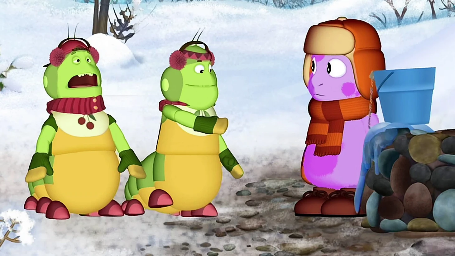 «Примерзли» – одна из самых необычных и запоминающихся зимних серий Лунтика. Сюжет здесь строится вокруг довольно нелепой, но по-детски смешной ситуации: Лунтик и гусеницы примерзают языками к железному ведру. Герои весь эпизод пытаются освободиться, придумывая все новые способы, а зритель наблюдает за этим с легким волнением и сочувствием.