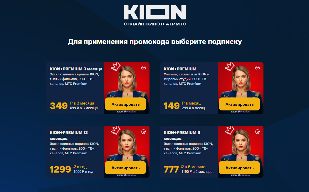 Как активировать промокод на подписку Кион.