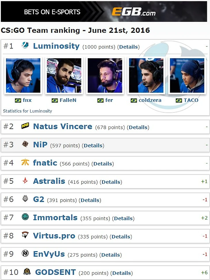 В топ-10 лучших составов мира вошли GODSENT. Также свое положение улучшили команды Astralis, Immortals, Dignitas и FaZe.