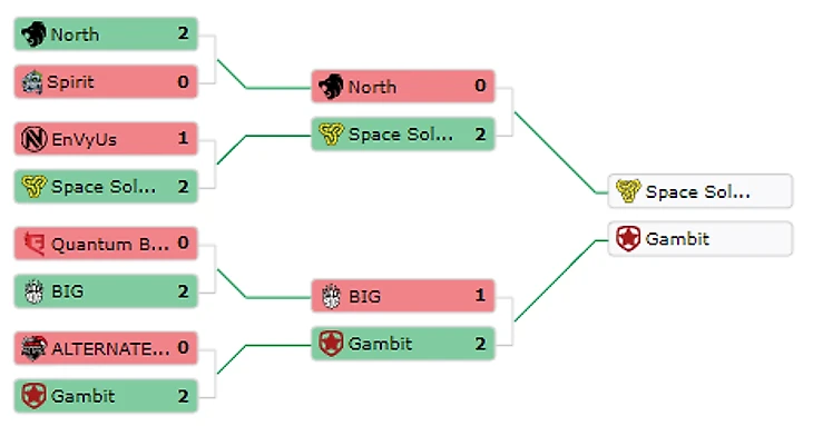 13:00 BIG 2-0 Envyus 13:00 Alternate Attax 2-1 North16:00 Space Soldiers 2-0 Gambit16:00 BIG 2-0 Alternate Attax19:00 BIG 2-0 Gambit