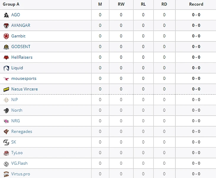 10:00 Team Liquid 2-0 NRG10:00 SK Gaming 2-1 VG.Flash13:00 Na’Vi 0-2 Tyloo13:00 AGO 2-0 Virtus.pro16:00 Mousesports 2-1 North16:00 Avangar 2-0 Gambit19:00 NiP 2-0 Hellraisers19:00 Godsent 2-0 Renegades