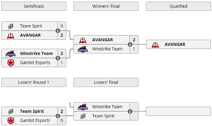 12:00 Team Spirit 0-2 Avangar15:30 Winstrike 2-1 Gambit Esports