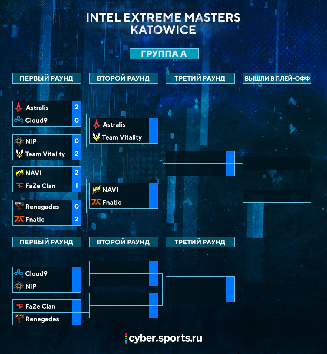 Группа А: NiP, Vitality, Astralis, Cloud9, NAVI, Faze, Renegades, Fnatic.