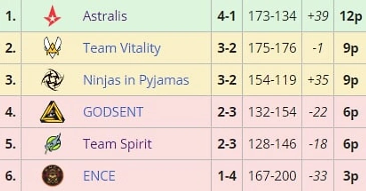 По итогам матчей группы А, Astralis прошла в плей-офф, а Team Vitality и Ninjas in Pyjamas сыграют плей-ин.