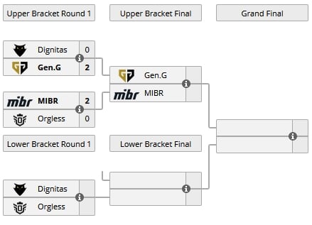 20:00 Dignitas 0-2 Gen.G23:00 MIBR 2-0 Orgless