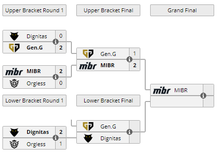 20:00 Dignitas 2-1 Orgless23:00 Gen.G 1-2 MIBR