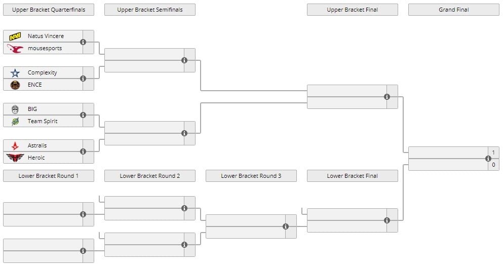 В плей-офф также вышла Spirit, которая сыграет против BIG. Оставшиеся две пары составили Complexity Gaming и Ence Esports, а также Astralis и Heroic.