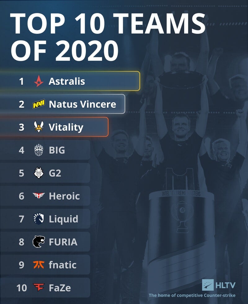 Astralis – лучшая команда 2020 года по версии HLTV, NAVI – вторые