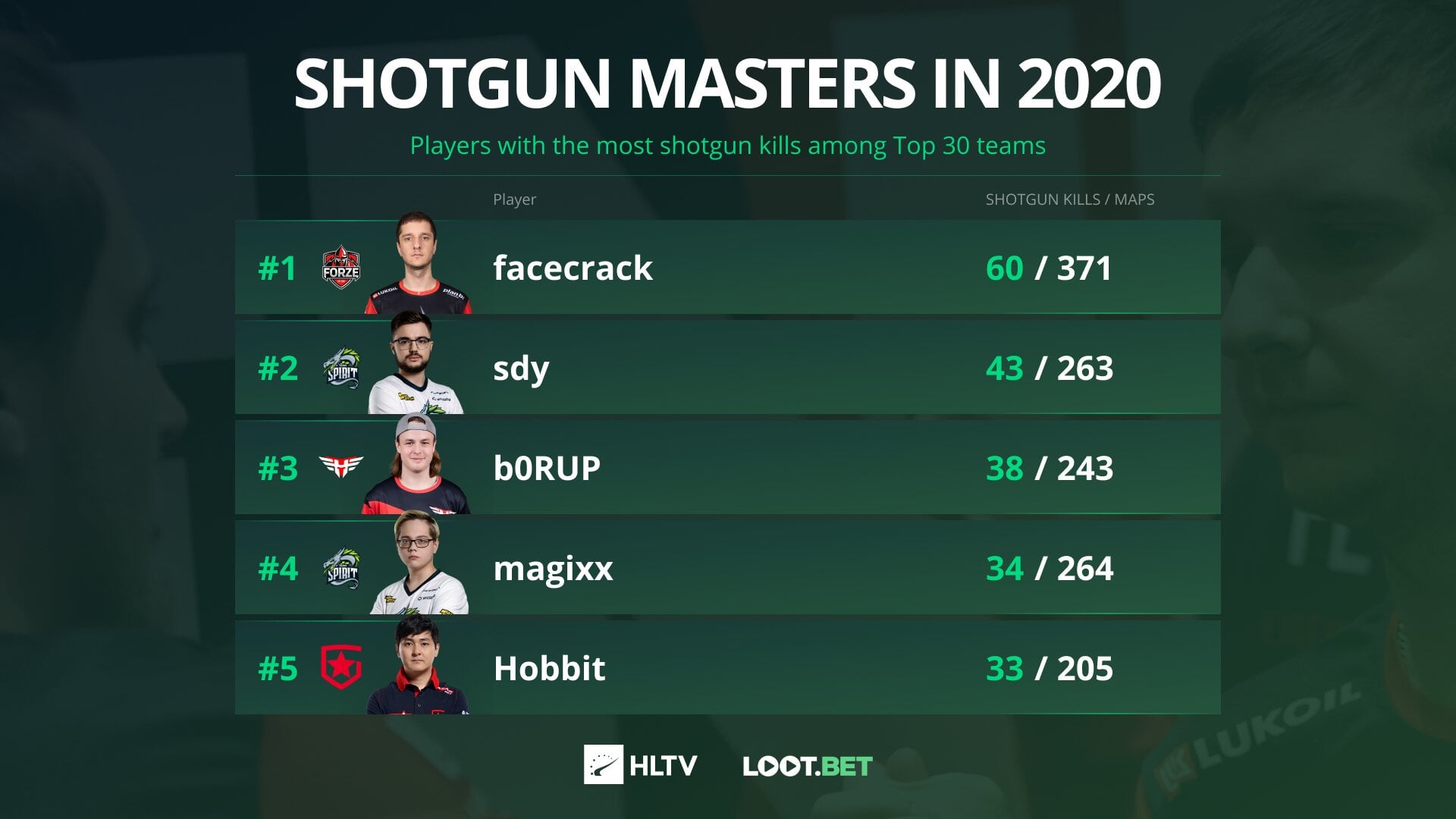 HLTV опубликовал список из пяти игроков про-сцены, которые чаще всего совершали убийства с дробовиков.