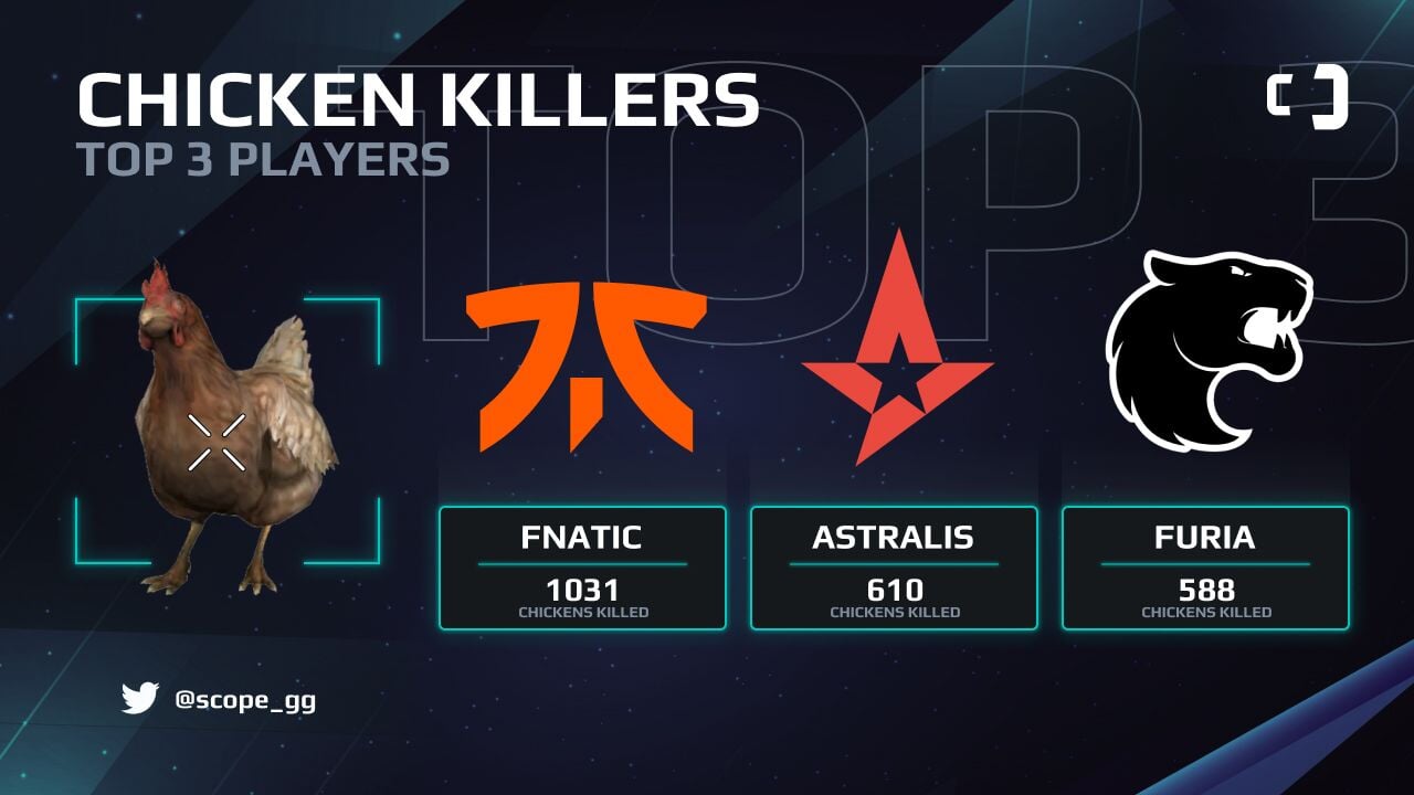 Чаще всего куриц убивали именно игроки из Fnatic – 1031 птица.