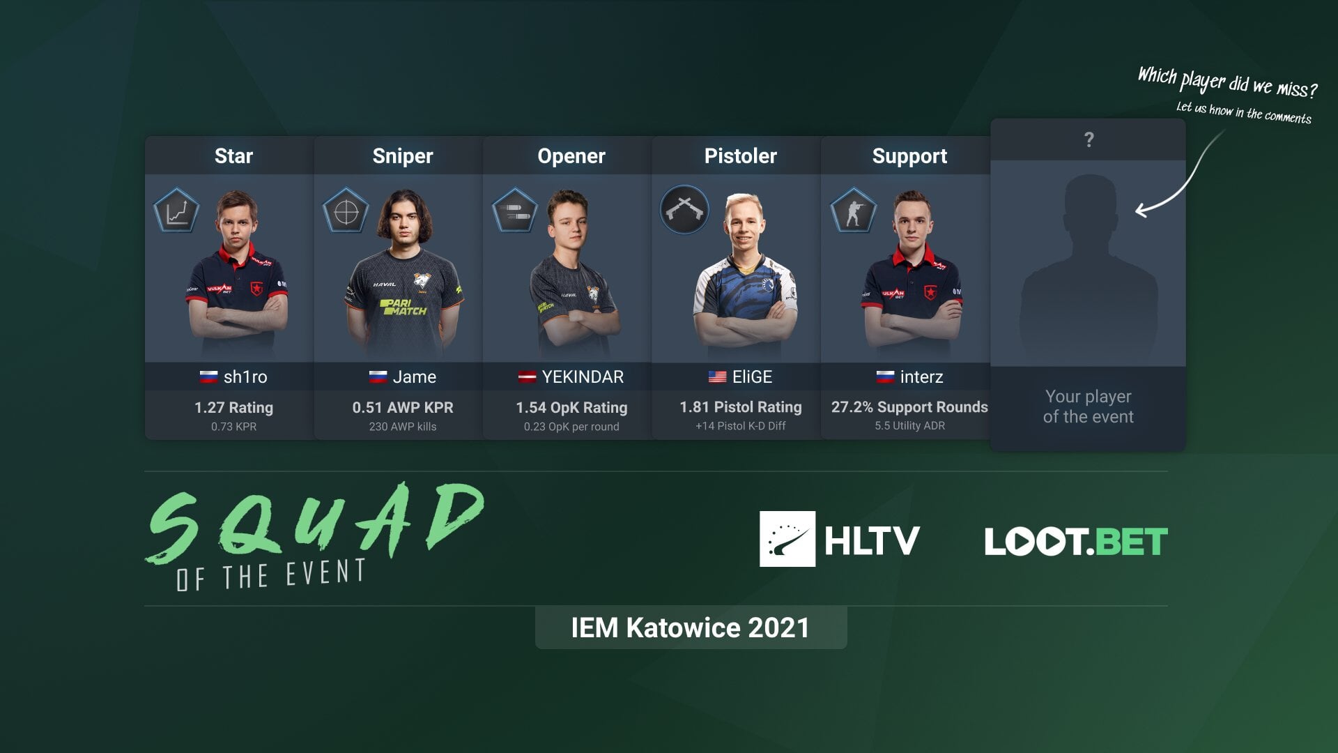 Sh1ro, Jame и Yekindar вошли в команду мечты IEM Katowice 2021