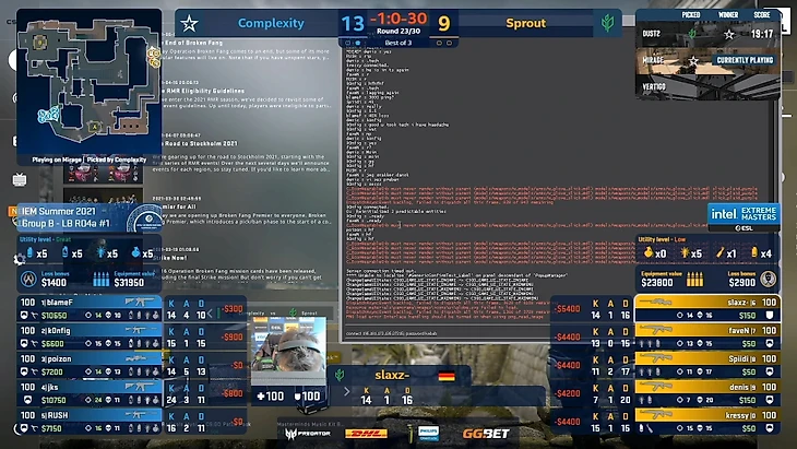 Во время матча между Complexity Gaming и Sprout на IEM Summer 2021 на сервер попали зрители стрима. Это случилось после того, как во время технической паузы на канале студии Maincast случайно показали пароль лобби.