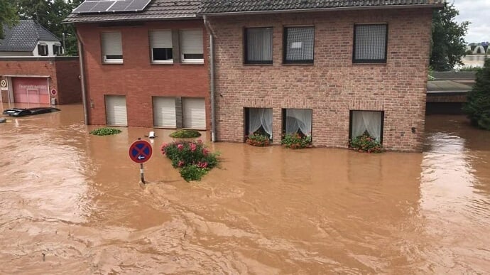 В Кельне сильнейшие ливни, вызванные циклоном «Бернд», привели к наводнению.