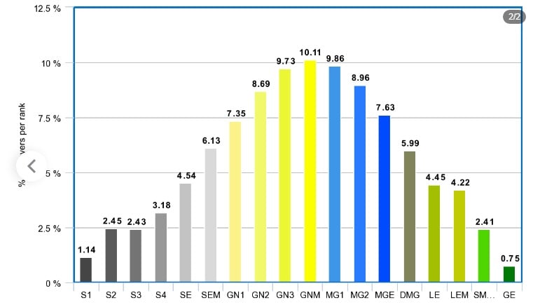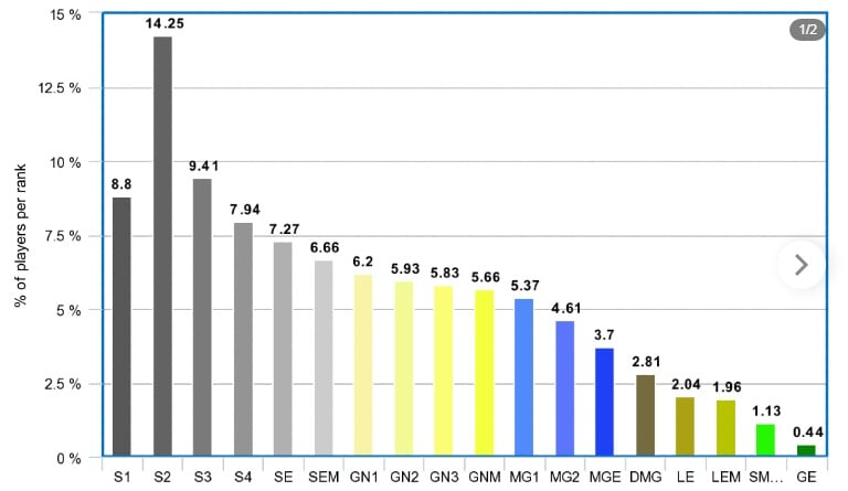 Оказалось, что среди российских каэсеров лидирует ранг Gold Nova 4 – 10,11%, а в США больше всего игроков со званием Silver 2 – 14,25%.